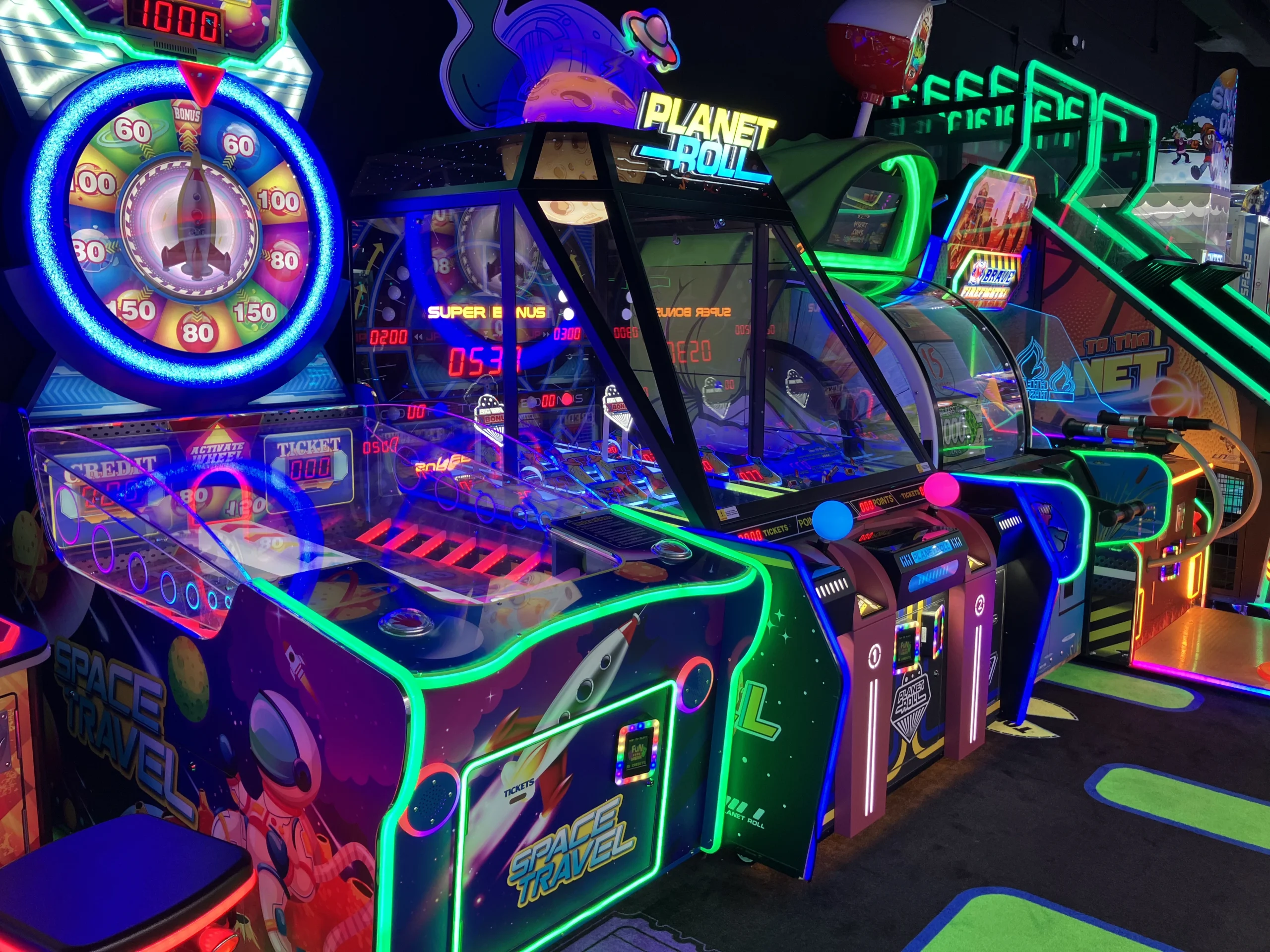 Classic and modern arcade gaming venues with redemption and video games.